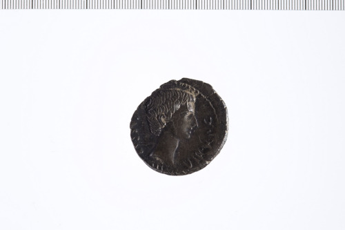 Testa barbata di Ottaviano a d. Bordo perlinato.