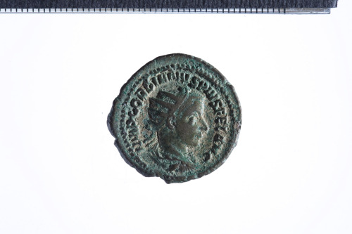 Busto radiato di Gordiano III a d. con corazza e paludamentum, di tre quarti di spalle; contorno perlinato.