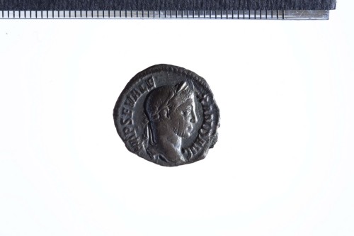 Testa laureata di Alessandro Severo a d.; contorno perlinato.