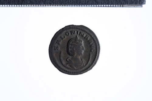 Busto diademato e drappeggiato di Salonina su falce lunare a d.; contorno perlinato.