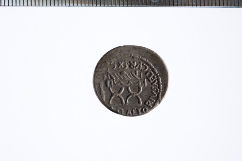 Testa di Cibele a d., con corona turrita. Dietro le spalle, protome di leone. A d. in basso, globo.