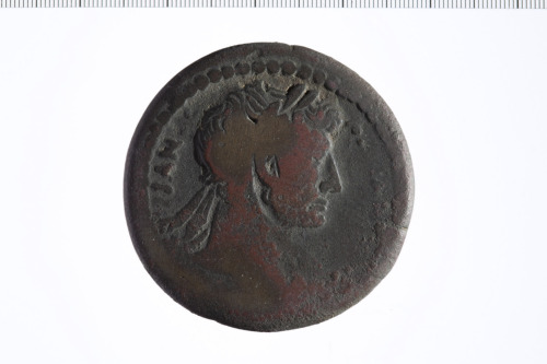 Busto laureato di Adriano a d., paludato, di tre quarti, di spalle; contorno perlinato.