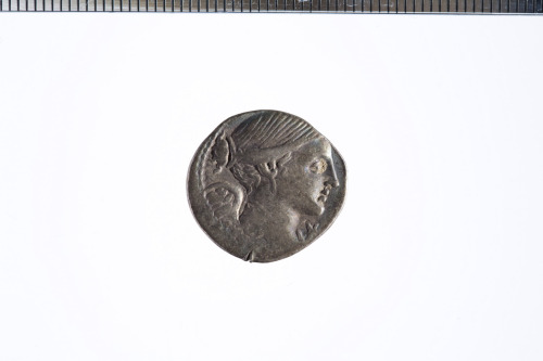 Busto drappeggiato della Vittoria a d., davanti X con barra in mezzo; c.p.