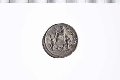 Busto di Diana a d. drappeggiato e diademato, sopra un crecente; dietro littus. Cerchio perlinato.