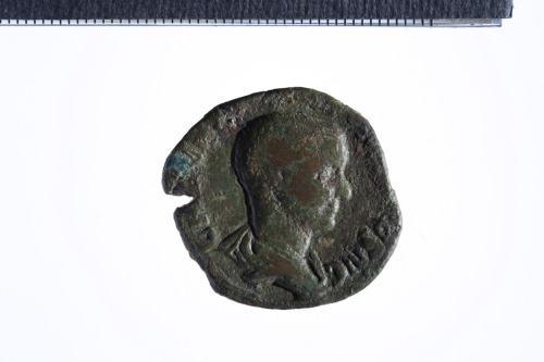 Busto a testa nuda di Ostiliano a d., con corazza (?) e paludamentum, di tre quarti di spalle; contorno perlinato.