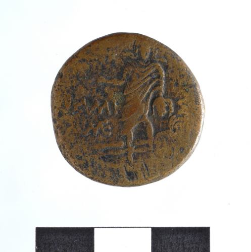 Testa di Athena a d.;indossa un elmo attico decorato con Pegaso e quattro cavalli