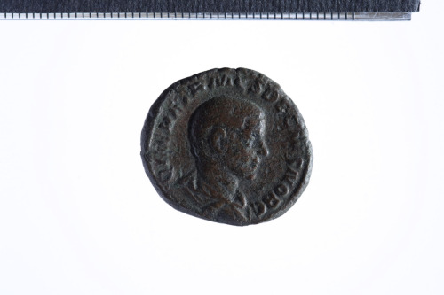 Busto a testa nuda di Herennio Etrusco a d., con corazza (?) e paludamentum, di tre quarti di spalle; contorno perlinato (?).