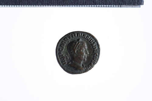 Busto laureato e corazzato di Traiano Decio a d., di tre quarti di spalle; contorno perlinato.