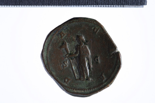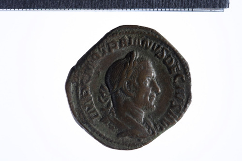 Busto laureato di Traiano Decio a d. con corazza e paludamentum, di tre quarti di spalle; contorno perlinato.