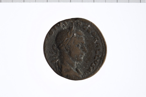 Busto di laureato di Treboniano Gallo a d., paludato.