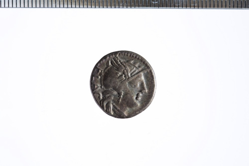 Testa galeata di Roma a d. con elmo alato; c.p.