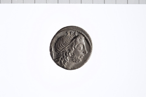 Busto maschile a d. drappeggiato, con i capelli raccolti da una fascia e scettro sulla spalla. Cerchio perlinato.