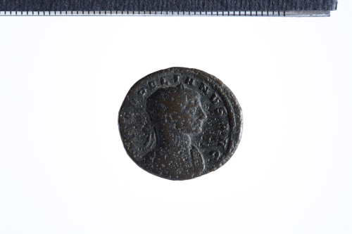 Busto radiato e corazzato di Aureliano a d.; contorno perlinato.