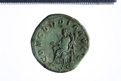 Busto laureato di Pupieno a d. con corazza e paludamentum, di tre quarti di spalle; contorno perlinato.