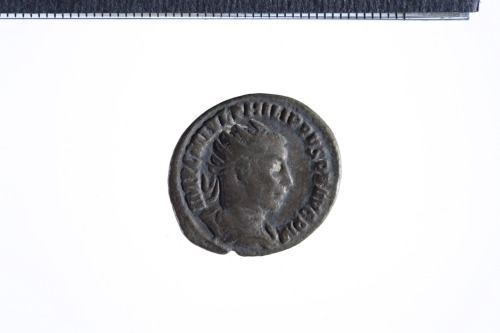 Busto radiato di Filippo I a d., con corazza (?) e paludamentum, di tre quarti di spalle; contorno perlinato.