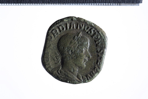 Busto laureato di Gordiano III a d. con corazza e paludamentum, di tre quarti di spalle; contorno perlinato.