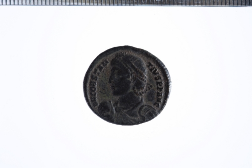 Busto diad., drapp. e corazz. a s., regge globo nella d.