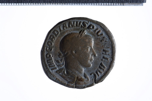 Busto laureato di Gordiano III a d. con corazza (?) e paludamentum, di tre quarti di spalle; contorno perlinato.