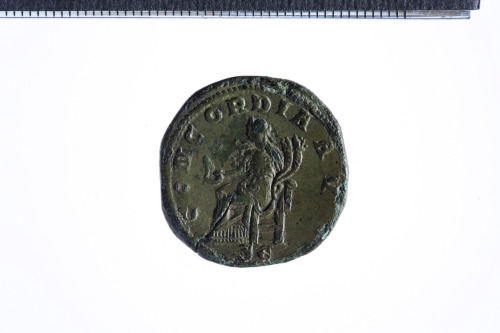 Busto radiato di Gordiano III a d. con corazza (?) e paludamentum, di tre quarti di spalle; contorno perlinato.