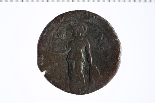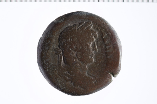 Busto laureato di Adriano a d., paludato, corazzato, di tre quarti, di spalle.