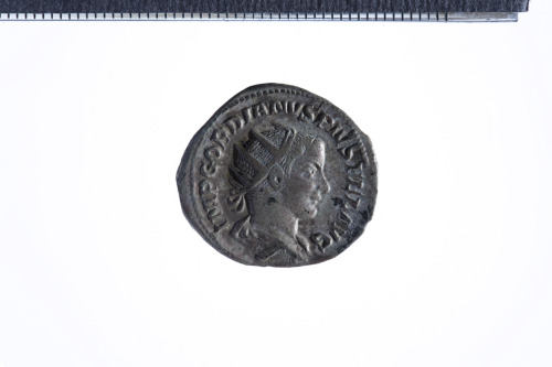 Busto radiato di Gordiano III a d. con corazza e paludamentum, di tre quarti di spalle; contorno perlinato.