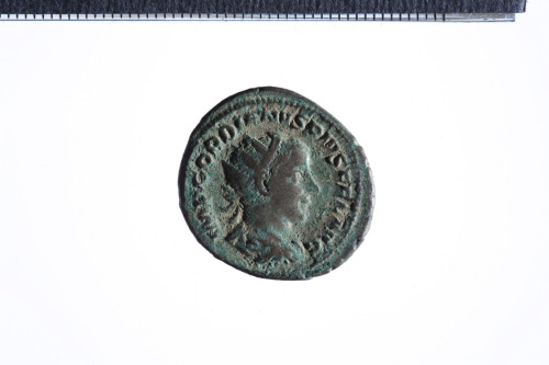Busto radiato di Gordiano III a d. con corazza e paludamentum, di tre quarti di spalle; contorno perlinato.