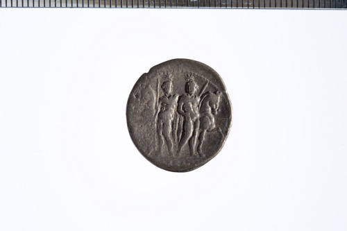 Testa di un giovane coronata da una corona di quercia a d. (Apollo?); sotto al mento, un asterisco ; c.p.