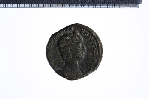 Busto diademato e drappeggiato di Julia Mamaea a d. su crescente; contorno perlinato.