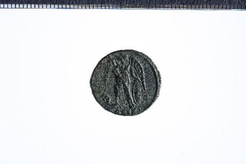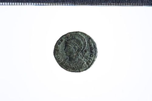 Busto elmato di Costantipoli a s. con scettro