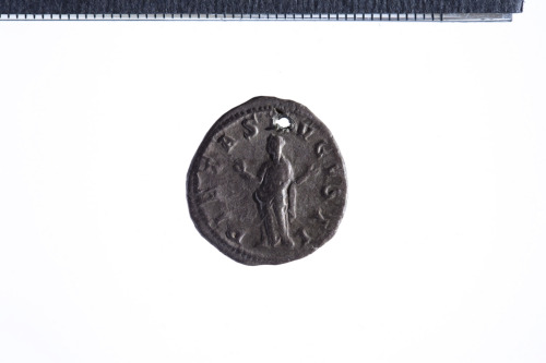 Busto laureato di Gordiano III a d. con corazza (?) e paludamentum, di tre quarti di spalle; contorno perlinato.