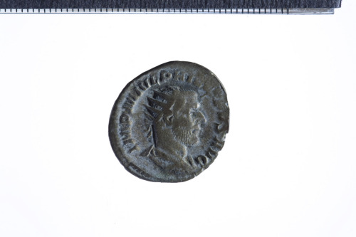 Busto radiato di Filippo I a d., con corazza (?) e paludamentum, di tre quarti di spalle; contorno perlinato.