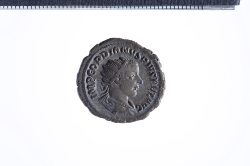 Busto radiato di Gordiano III a d. con corazza e paludamentum, di tre quarti di spalle; contorno perlinato.