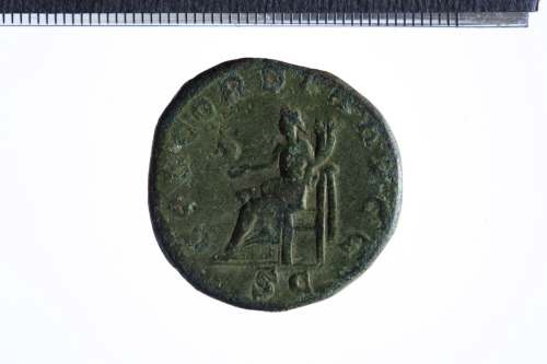 Busto laureato di Balbino a d. con corazza e paludamentum, di tre quarti in avanti; contorno perlinato.