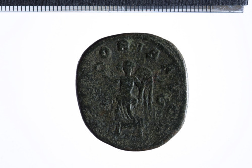 Busto laureato di Gordiano II a d. con corazza (?) e paludamentum, di tre quarti di spalle; contorno perlinato.