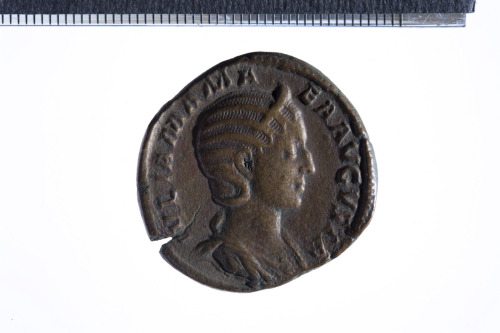 Busto diademato e drappeggiato di Julia Mamaea a d.; contorno perlinato.