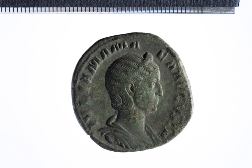 Busto diademato e drappeggiato di Julia Mamaea a d.; contorno perlinato.