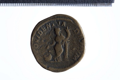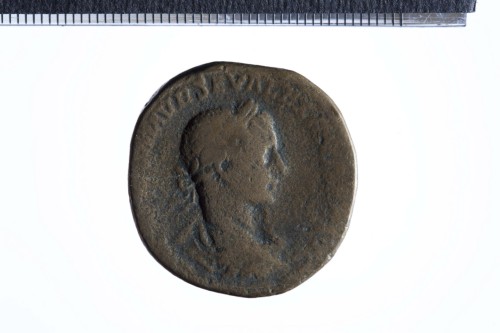 Busto laureato di Alessandro Severo a d., con corazza e paludamentum, di tre quarti di spalle; contorno perlinato.