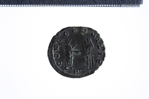 Busto radiato e corazzato di Aureliano a d.; contorno perlinato.
