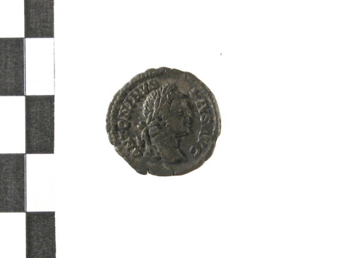 Testa laureata di Antonino III a d.; contorno perlinato.