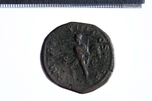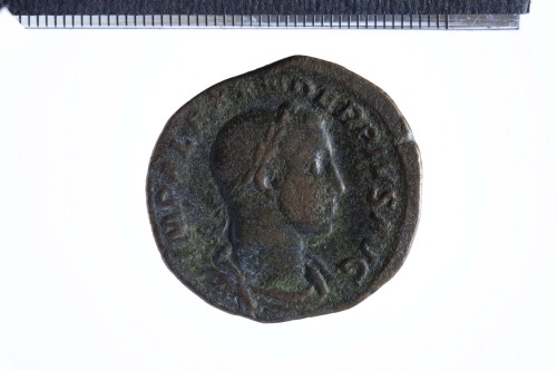 Busto laureato di Alessandro Severo a d., con corazza e paludamentum, di tre quarti in avanti; contorno perlinato.