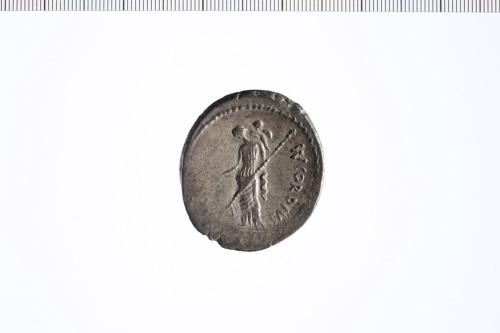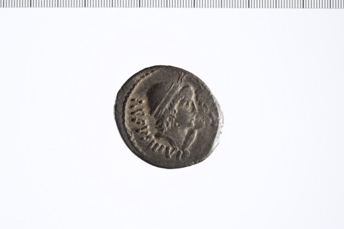 Teste dei Dioscuri a d. con i pilei sormontati da due stelle e decorati con due nastri. Bordo perlinato.