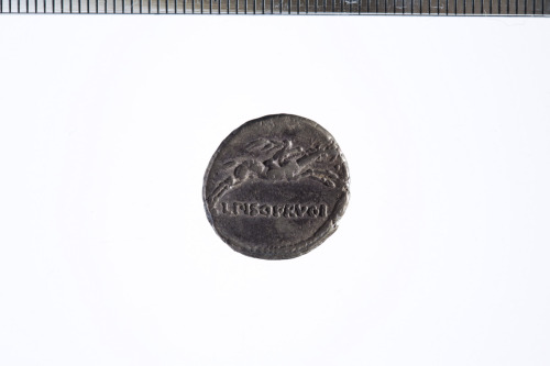 Testa laureata di Apollo a d. con i capelli fermati da un nastro. Bordo perlinato.