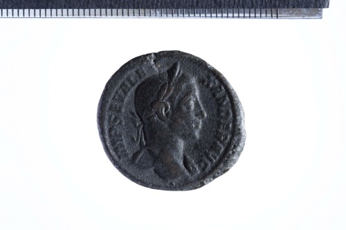 Busto laureato di Alessandro Severo a d., con paludamentum sulla spalla s.; contorno perlinato.
