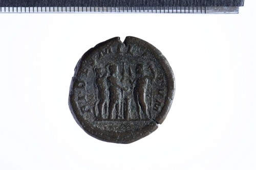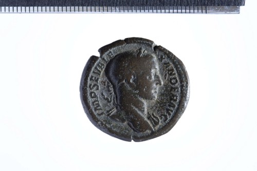 Busto laureato di Alessandro Severo a d. con paludamentum sulla spalla s.; contorno perlinato.
