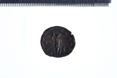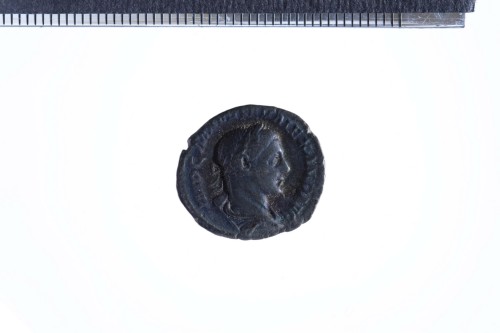 Busto laureato di Alessandro Severo con paludamentum, di tre quarti di spalle; contorno perlinato.