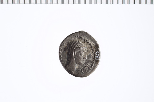 Testa di Vesta velata a d. Cerchio perlinato.