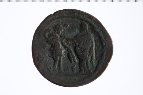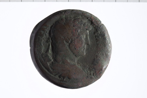 Busto laureato di Adriano a d., paludato, corazzato, di tre quarti, di spalle.