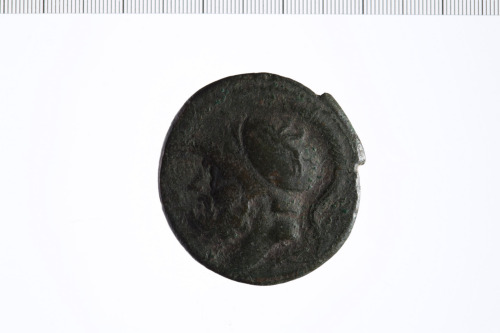 Testa di Ares elmata a s.; elmo decorato con pegaso.