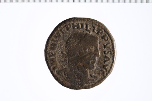 Busto laureato a d. di Filippo I, paludato e corazzato, di tre quarti, in avanti; contorno perlinato.