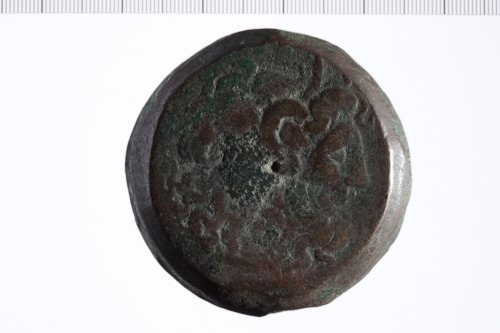 Testa di Zeus Ammone a d. con diadema e ornamenti floreali. Contorno lineare.